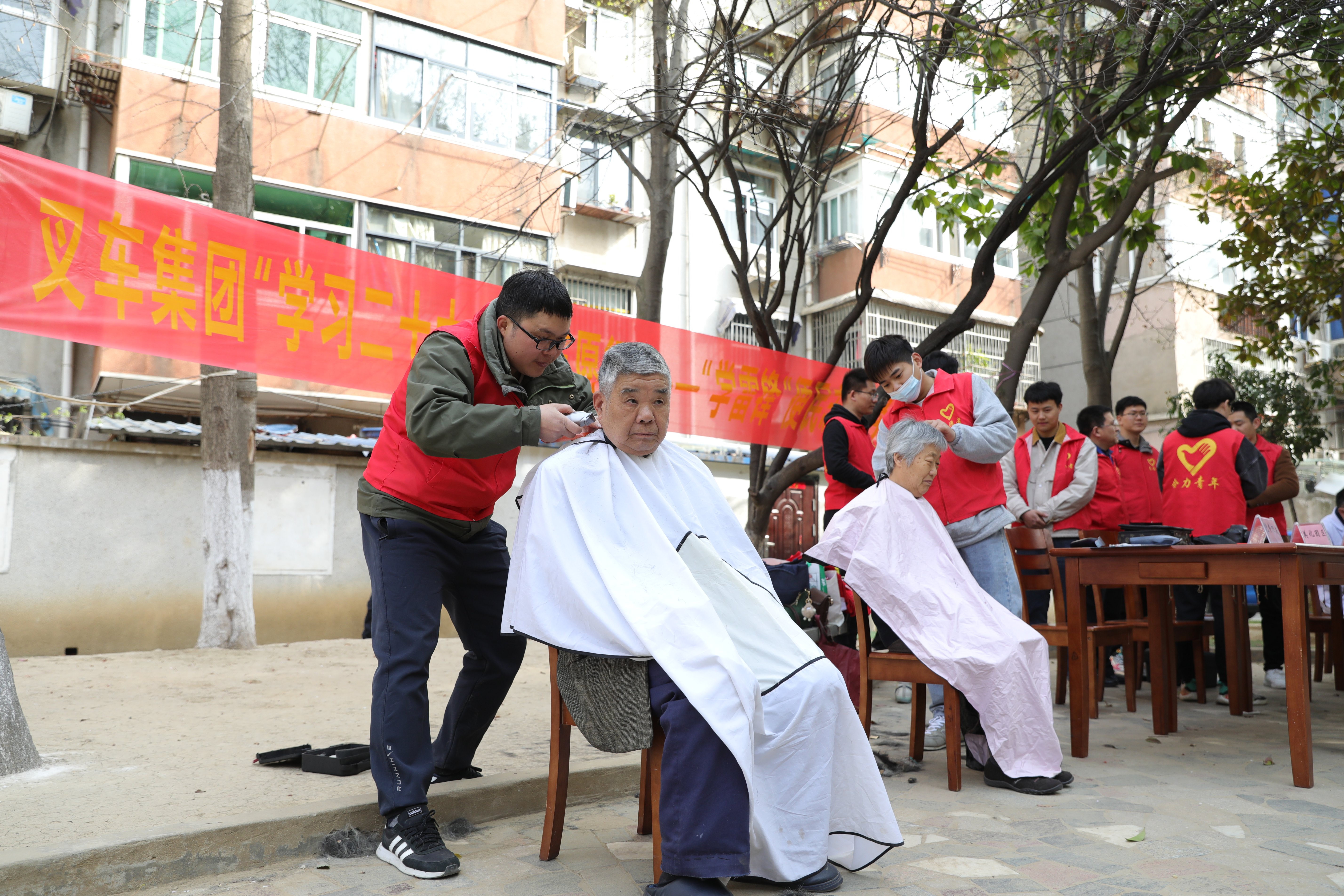 3月12日,合力家園一群身穿合力志愿者紅馬甲的年輕人特別惹人注目,他們或坐在一字?jǐn)[開(kāi)的服務(wù)咨詢(xún)臺(tái)前為居民量血壓,或耐心的為前來(lái)咨詢(xún)法律服務(wù)的居民答疑解惑,或嫻熟的揮動(dòng)手中的剃刀為居民免費(fèi)理發(fā),或主動(dòng)上門(mén)為居民維修電器,或穿梭在樓道街巷進(jìn)行義務(wù)清...