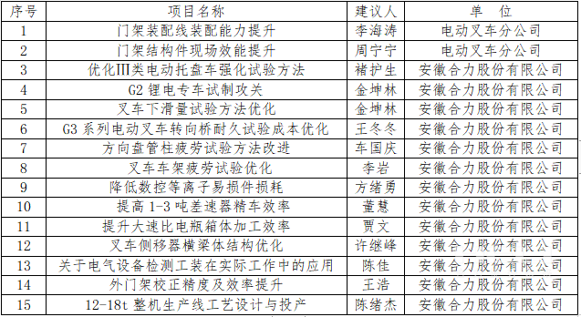 安徽叉車集團(tuán)多個(gè)項(xiàng)目在安徽省職工技術(shù)創(chuàng)新競(jìng)賽中獲獎(jiǎng)